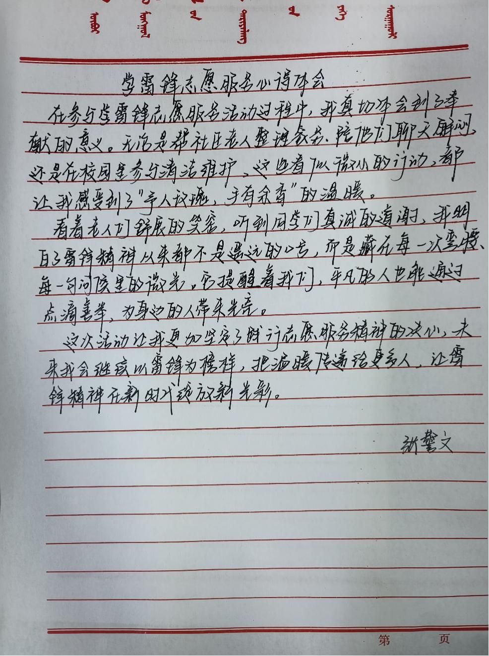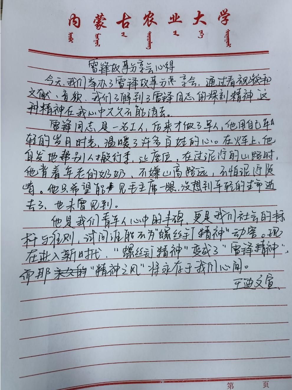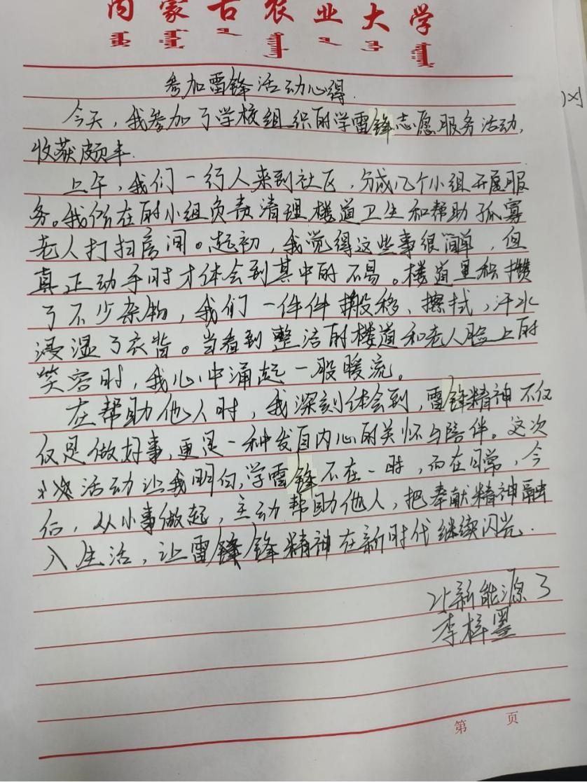 为传承雷锋精神,厚植爱国情怀,我院组织开展“学雷锋精神,树道德新风”主题征文活动,同学们以文字书写榜样力量、抒发时代担当。