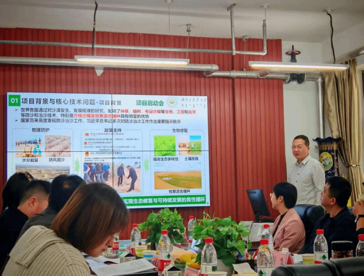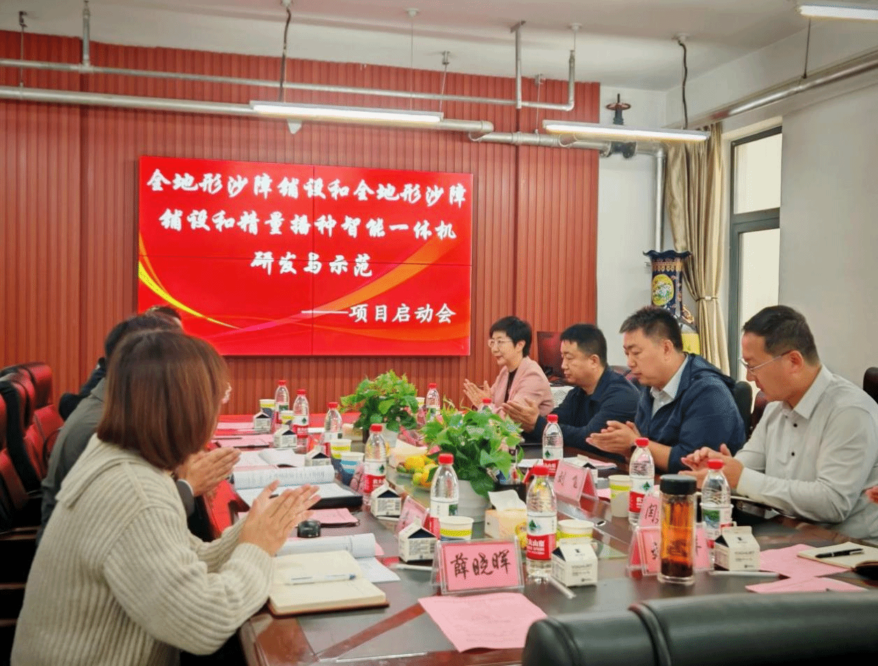 项目集中我院相关方面优势科研力量,联合中国农业科学院草原研究所、蒙草生态环境(集团)股份有限公司等单位共同实施。启动会上,与会人员围绕项目内容展开了深入交流与讨论,明确了沙障铺设与精量播种的关键参数、核心技术创新方向以及装备研发的技术路线。