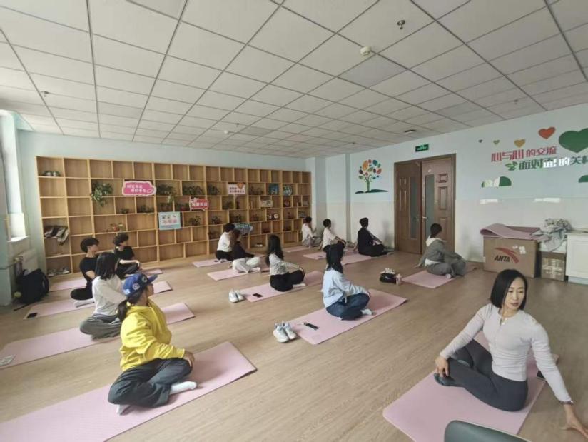 从简单的热身拉伸,到针对性的身心疗愈体式,同学们全神投入、跟随指引,在一呼一吸间感受身体的舒展,在一招一式中释放积攒的压力与杂念。大家抛开学习生活中的烦恼,慢慢找寻身心平衡的状态,完成了一次深度的身心放松。