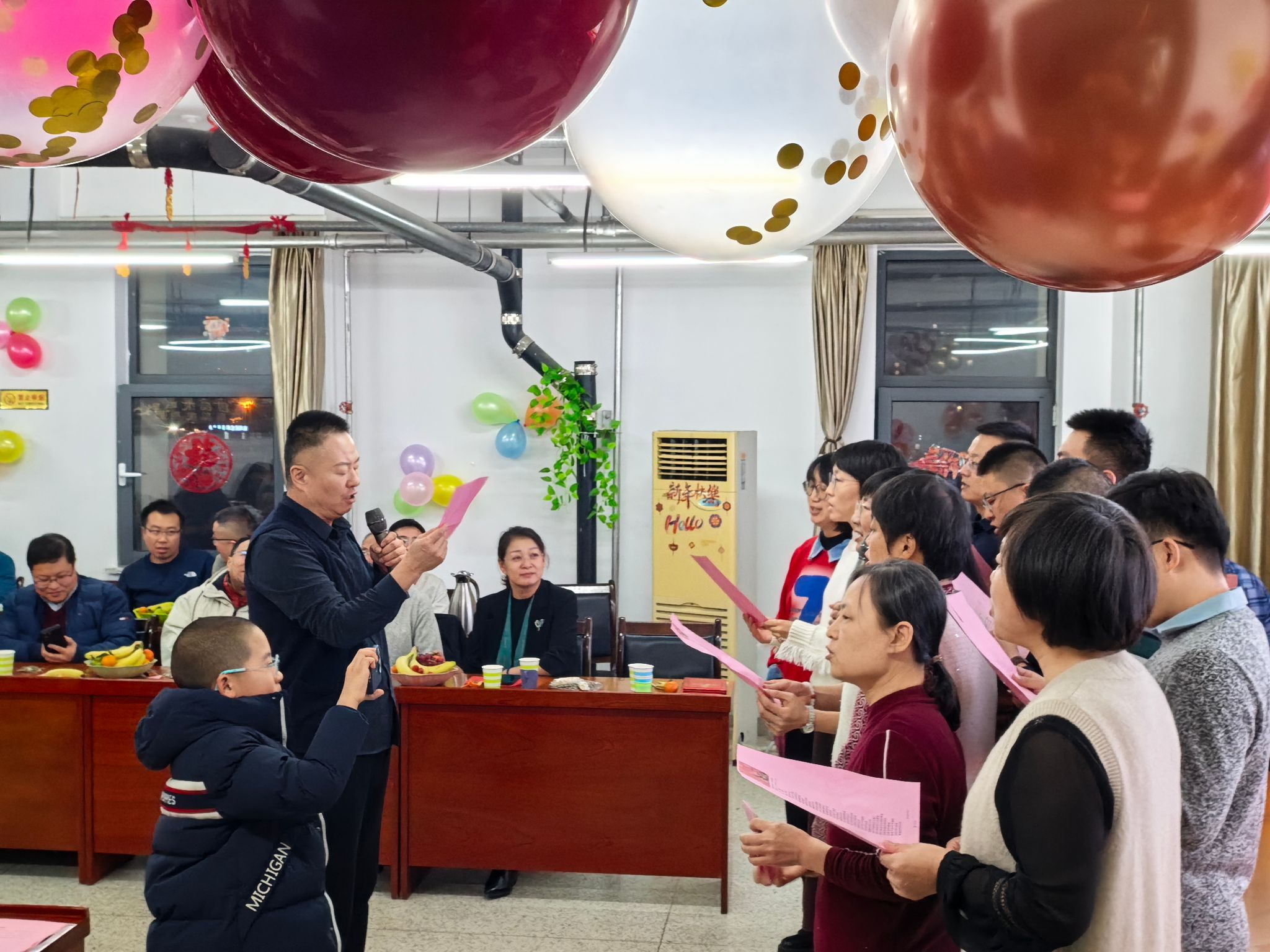 联欢会现场,节目形式多样,精彩纷呈。既有激昂澎湃的集体合唱,也有深情婉转的个人独唱;既有幽默风趣、贴近生活的三句半表演,也有惊喜连连的抽奖环节与妙趣横生的小游戏互动。整场活动气氛热烈,欢声笑语此起彼伏,洋溢着一片欢乐祥和的节日氛围。