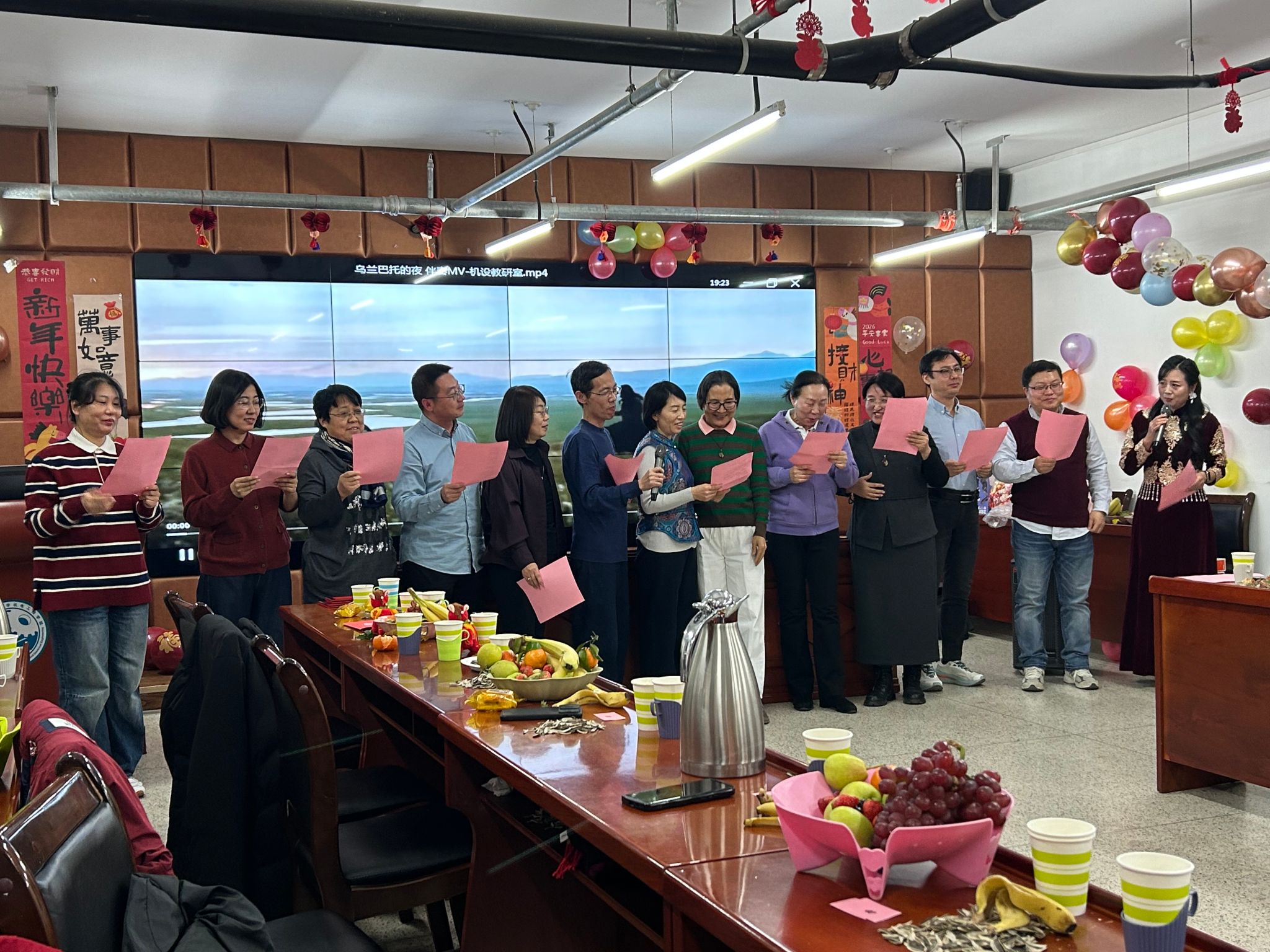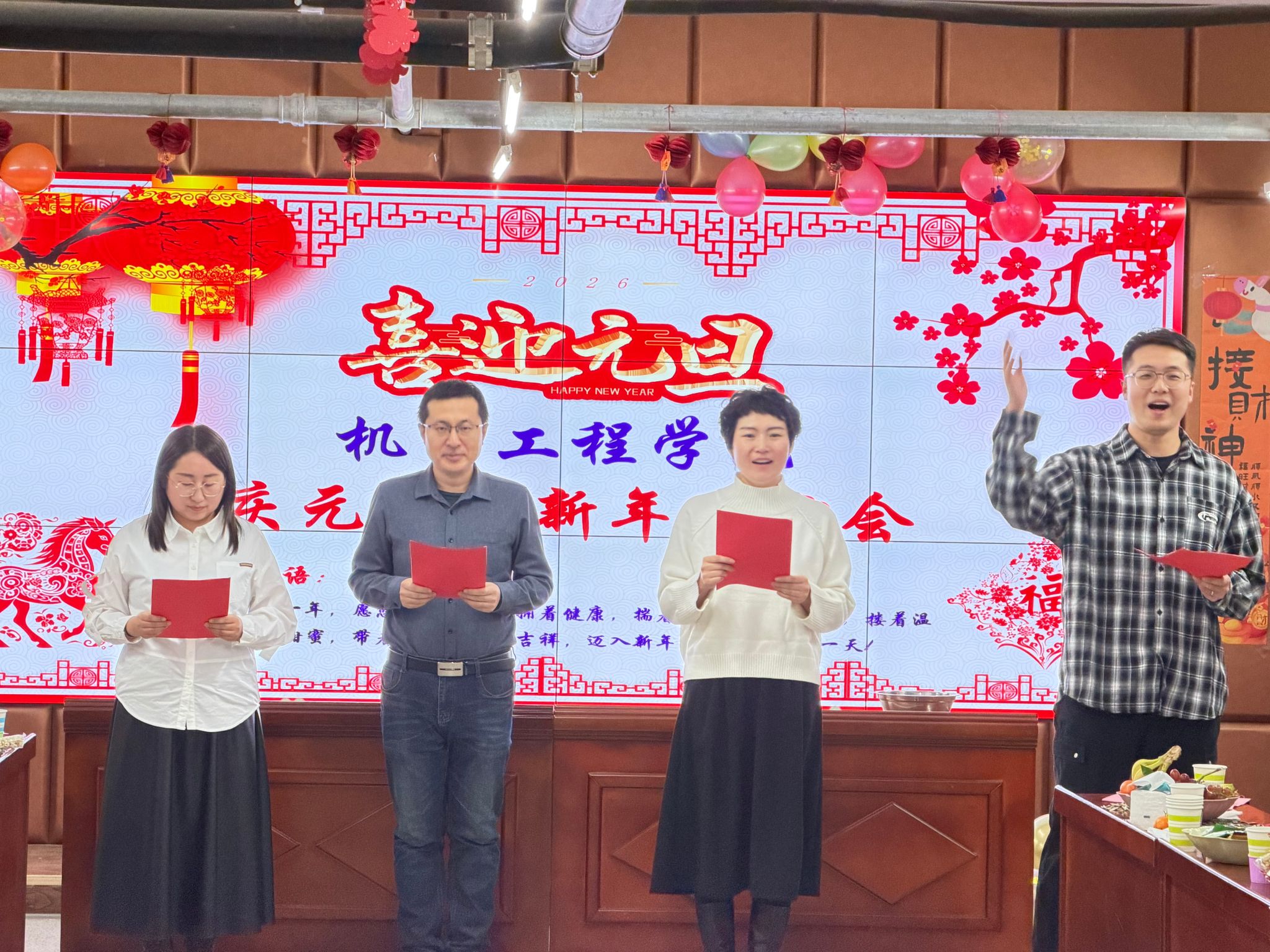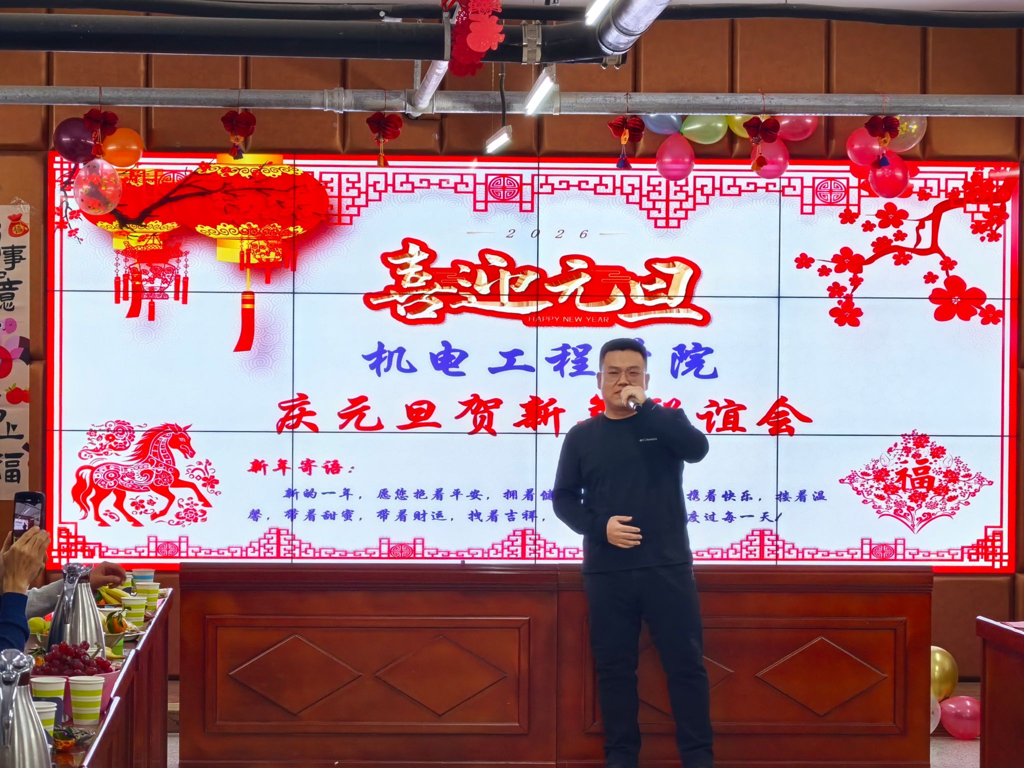 2025年12月30日,学院于工科楼825举办2026年庆元旦贺新年联谊会。学院领导班子、关工委代表、退休老教师代表与全院教职工欢聚一堂,共庆元旦。