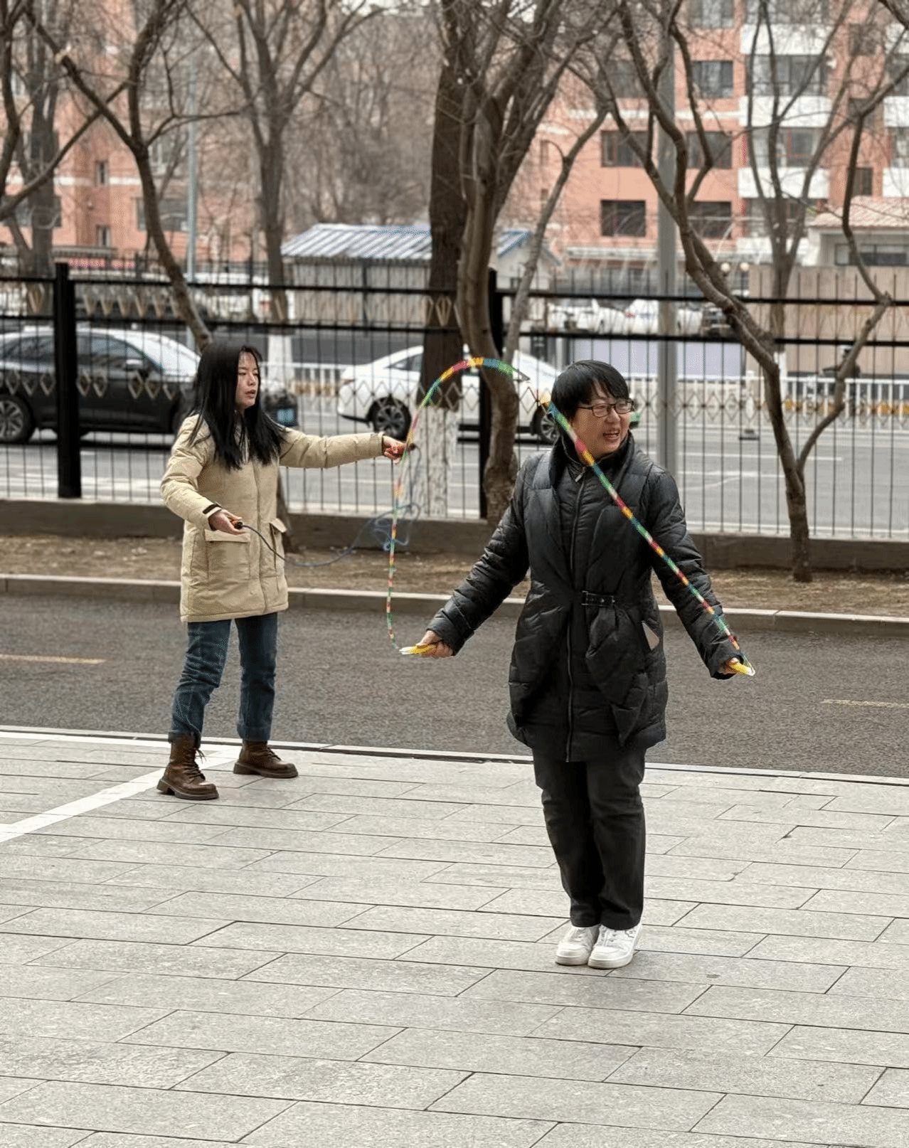 活动现场气氛热烈,活力四溢。女教师们精神饱满,热情高涨。跳绳比赛中,老师们身轻如燕,专注于节奏与速度,彩绳在她们手中快速飞舞,一道道弧线在空中划过,让人目不暇接。